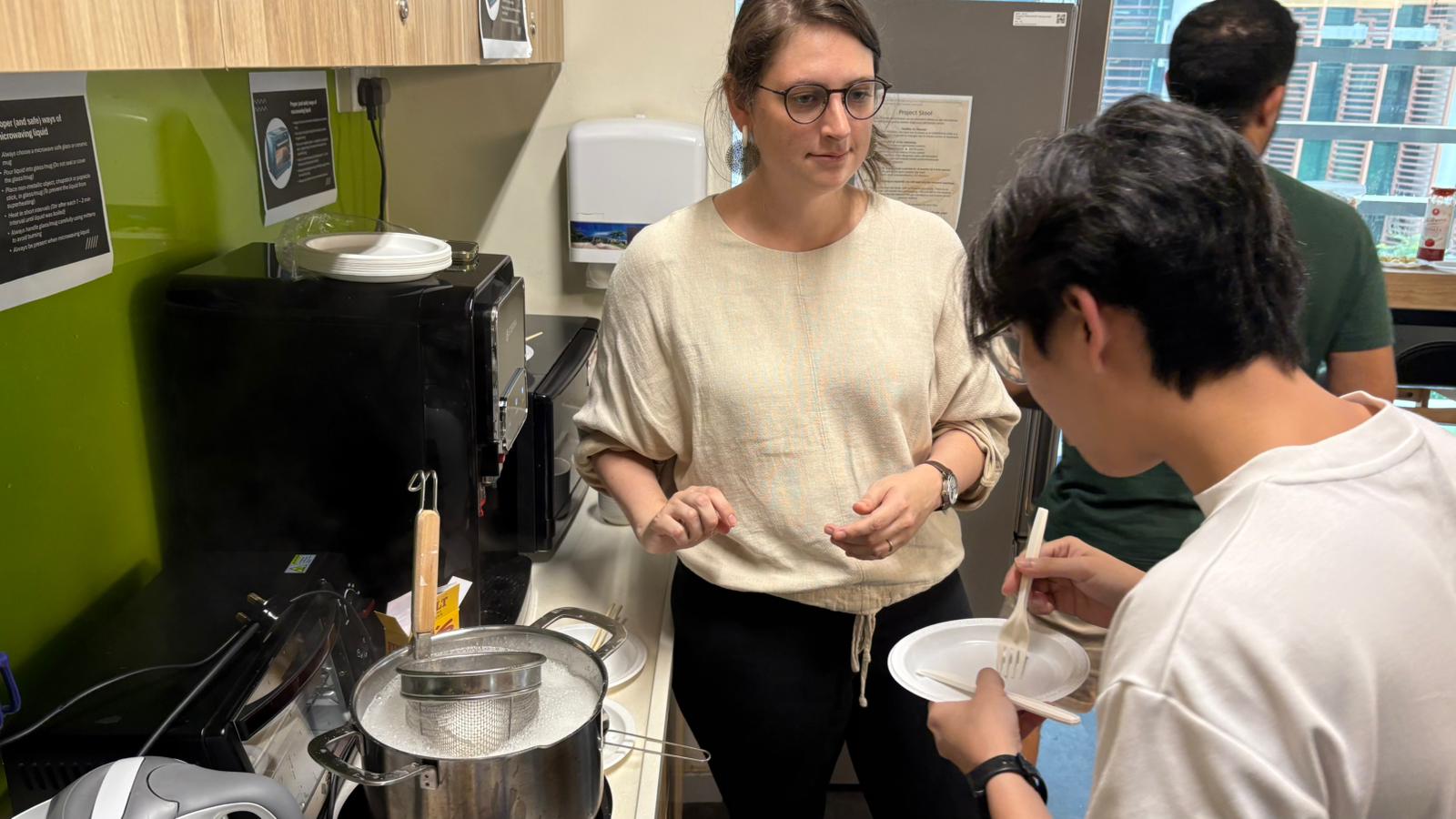 Jon, our resident chef, teaches lab members how to make beautiful pasta!